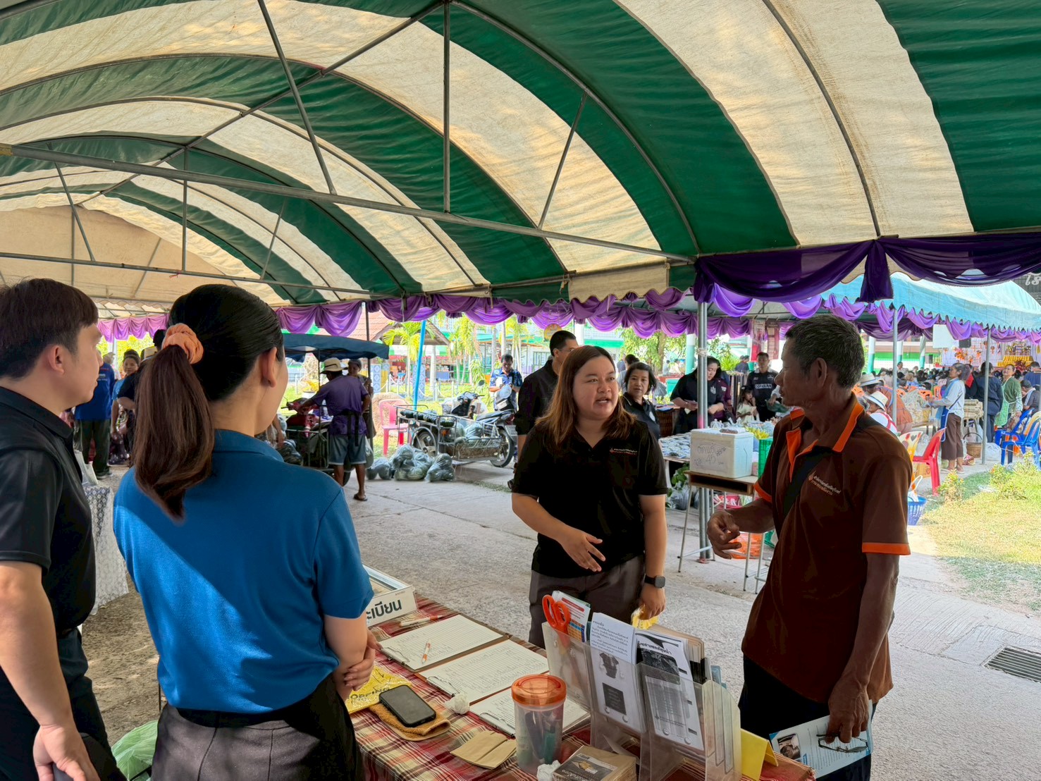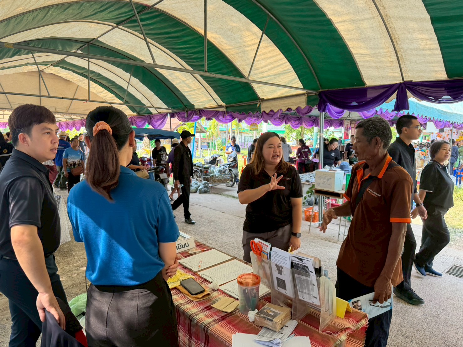 อาทิการทำหมันสุนัขและแมวของสำนักงานปศุสัตว์จังหวัดสุรินทร์ การให้คำปรึกษาด้านเอกสารต่าง ๆ และจำหน่ายสินค้าราคาถูกของสำนักงานพาณิชย์จังหวัดสุรินทร์ และผลิตภัณฑ์ชุมชนในพื้นที่
