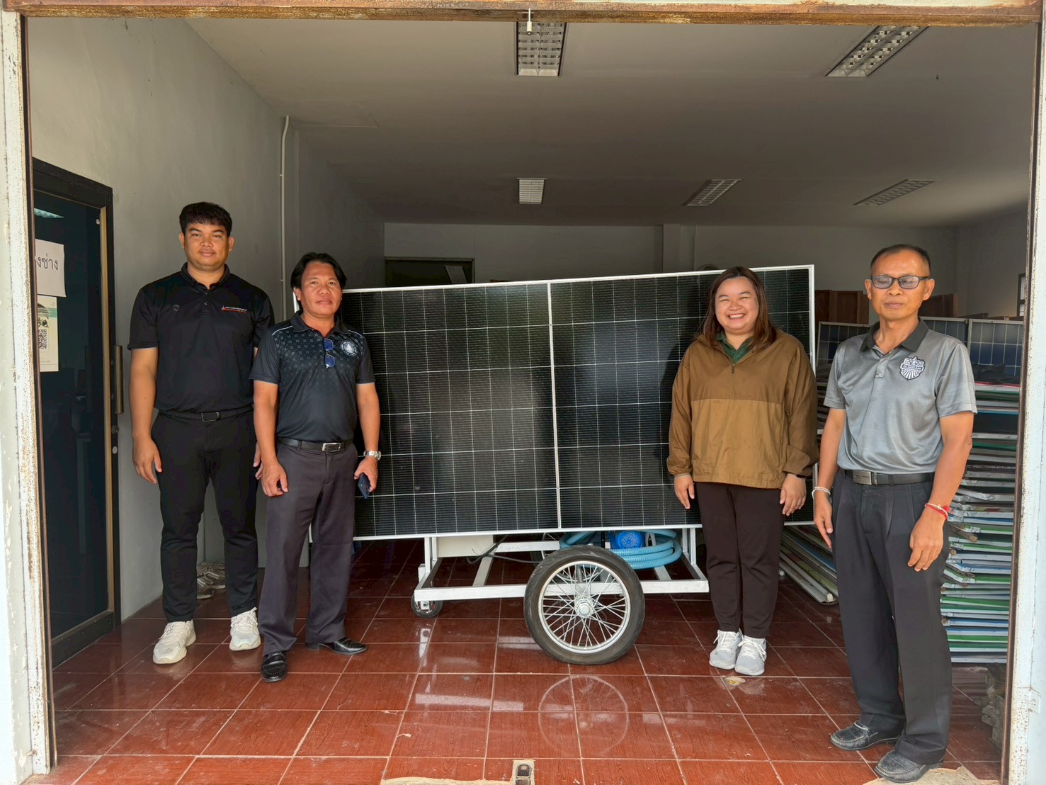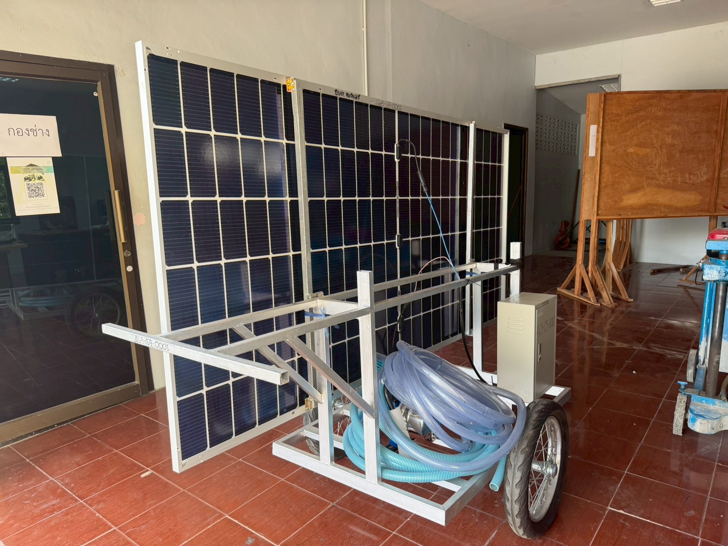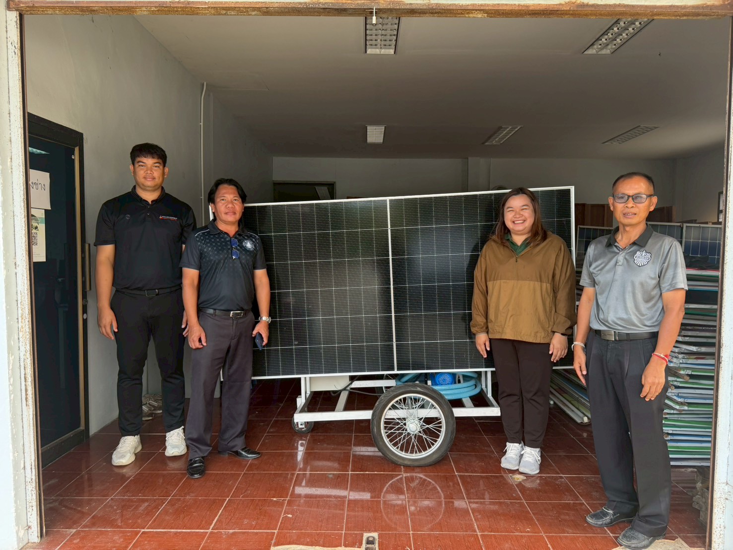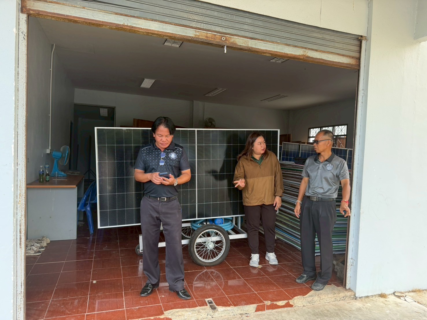 เจ้าหน้าที่ลงพื้นที่ประเมินประสิทธิผลของเทคโนโลยีพลังงานที่สนับสนุนจากโครงการฯ ได้แก่ รถเข็นสูบน้ำพลังงานแสงอาทิตย์แบบเคลื่อนที่ ขนาดไม่น้อยกว่า 340 วัตต์ จำนวน 4 ระบบ