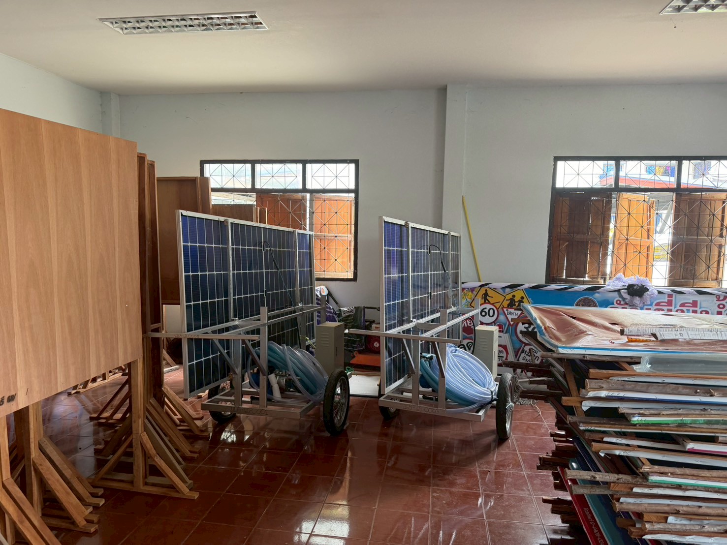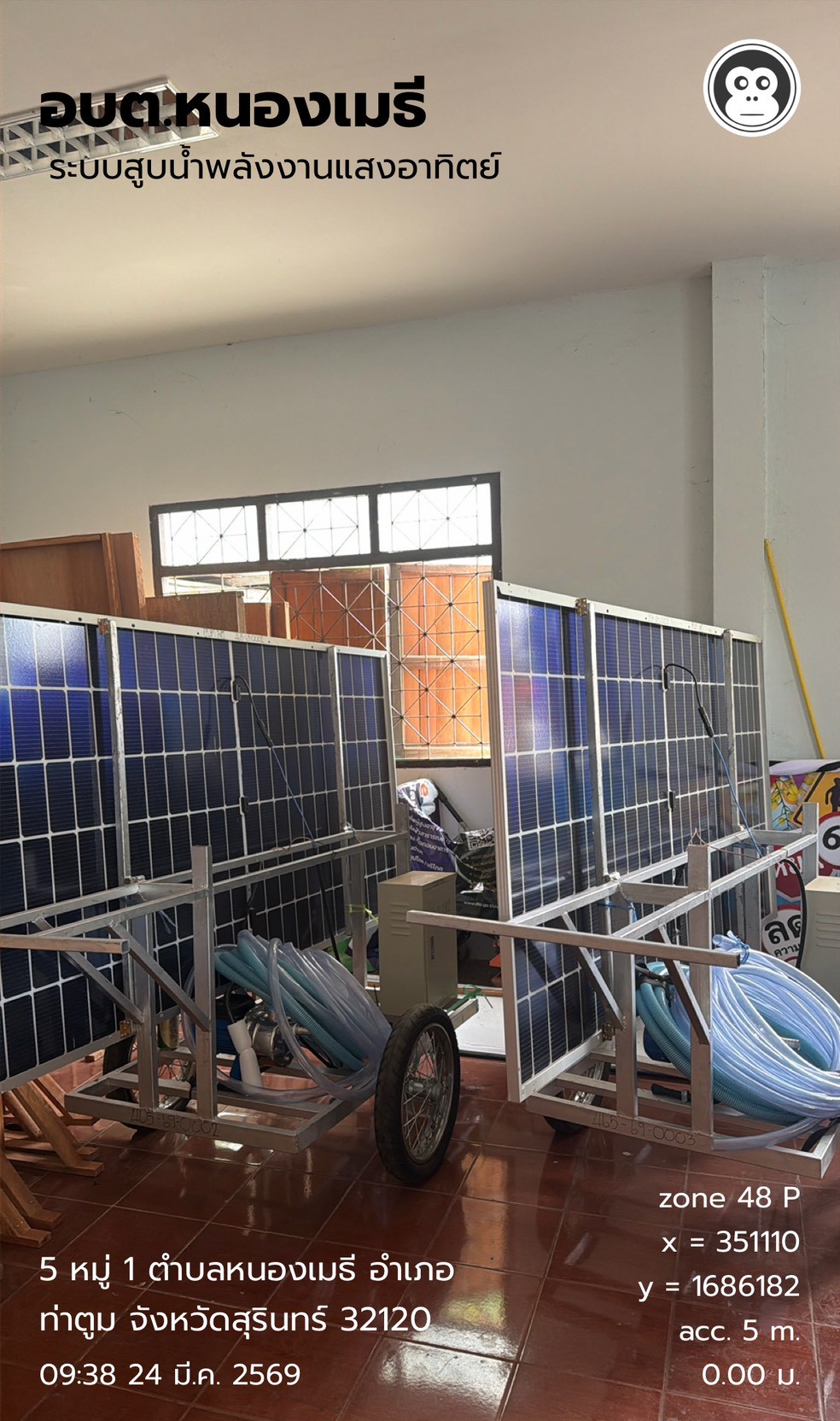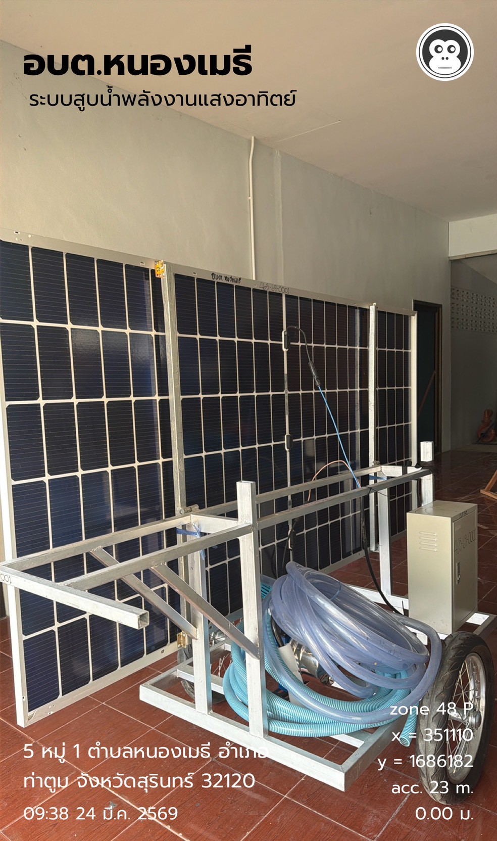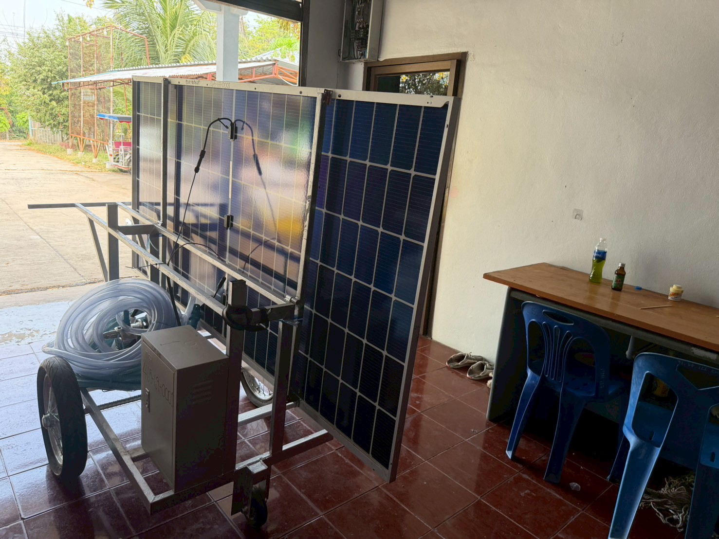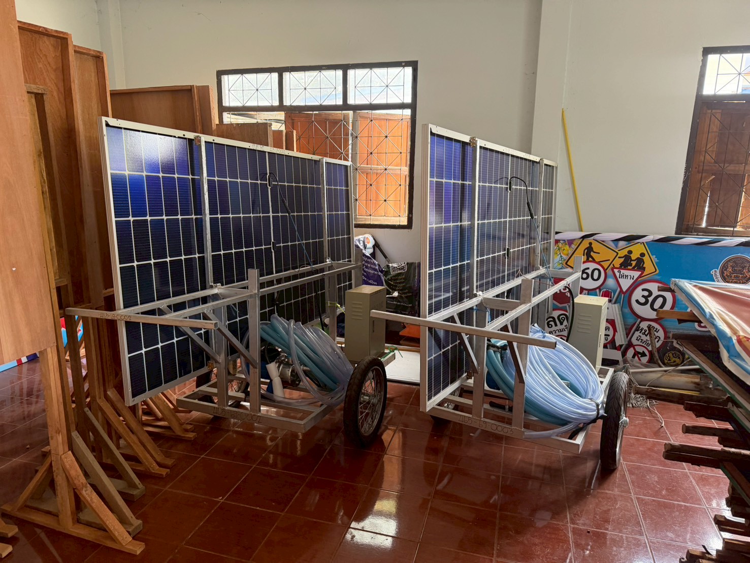 เจ้าหน้าที่ลงพื้นที่ประเมินประสิทธิผลของเทคโนโลยีพลังงานที่สนับสนุนจากโครงการฯ ได้แก่ รถเข็นสูบน้ำพลังงานแสงอาทิตย์แบบเคลื่อนที่ ขนาดไม่น้อยกว่า 340 วัตต์ จำนวน 4 ระบบ
